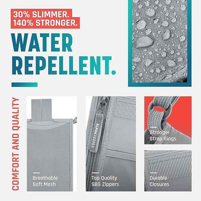 - Ultra-Slim and Comfortable Travel Neck Wallet: Innovative, breathable, moisture-resistant fabric for security and comfort during international travel. Includes new RFID blocking material for added protection.