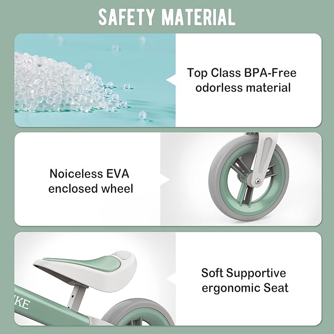 A few minutes installation: The baby balance bike is easy to assemble and only takes a few minutes to put together.You don’t need to have sophisticated or complicated tools at all.