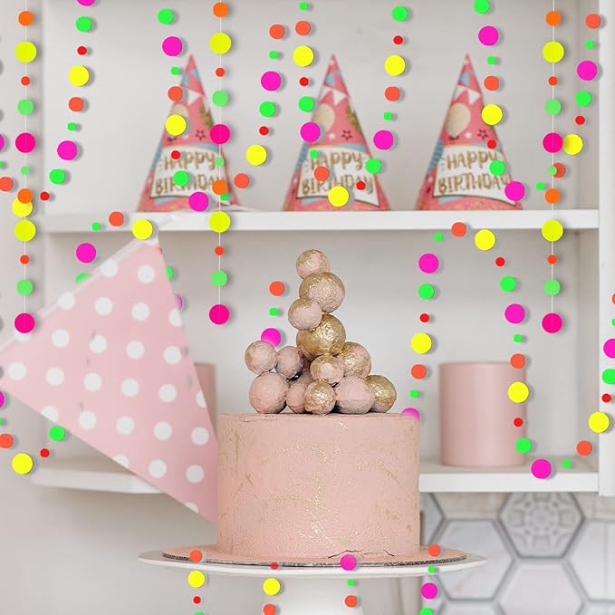 108feet Paper UV Round Dot Neon Garland Blacklight Reactive Glow in The Dark Party Supplies Streamers Glow Fluorescent Hanging Circle Dots Banners for Wedding Birthday Neon Party Decorations