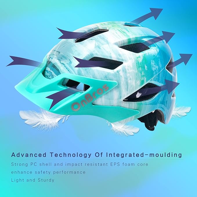 OnBros Kids Bike Helmet - Bike Helmets for 5-14 Boys or Girls with Visor, Children Bicycle Helmet for Skateboard Mountain Scooter Road Cycling, Lightweight and Adjustable 50-57CM