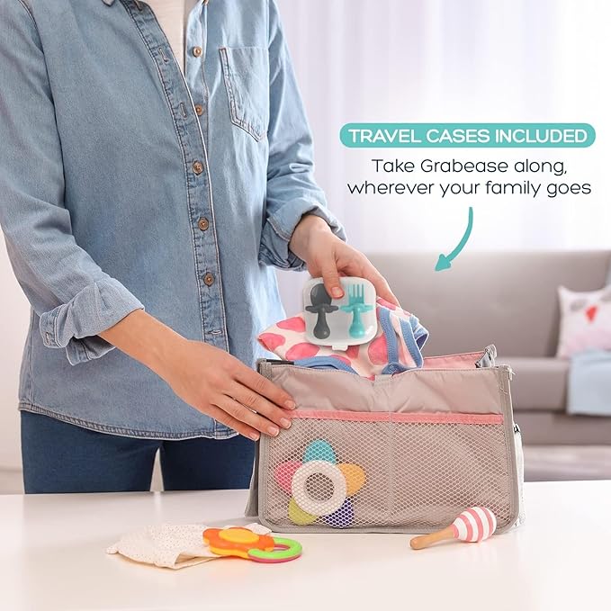 - Prioritize Safe Mealtimes: Featuring an innovative choke protection barrier, these baby led weaning utensils for 6 months and up ensure secure feeding experiences. Grabease utensils for toddlers are crafted to promote confident and independent eating