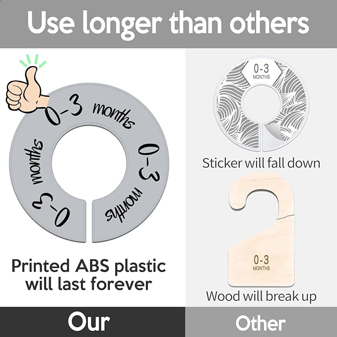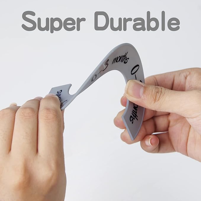 【Double Printed】:The Baby Closet Dividers are double printed big words all over the plate so that parents can easily see it clearly even the Baby Closet Dividers are not staying upright. In addition, printed word will not fade but the sticker will fall down