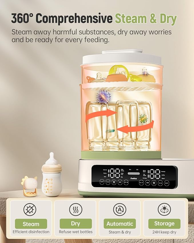 - 【All-in-One Solution】Simplify parenthood with our multi-functional bottle warmer, bottle sterilizer and dryer, and electric kettle combo. From newborns to toddlers, no need to buy separate devices for each task, this versatile duo is designed to meet all your feeding needs. Feekaa powerful combination saves money, time, countertop space, and effort, giving you more moments to cherish with your baby.