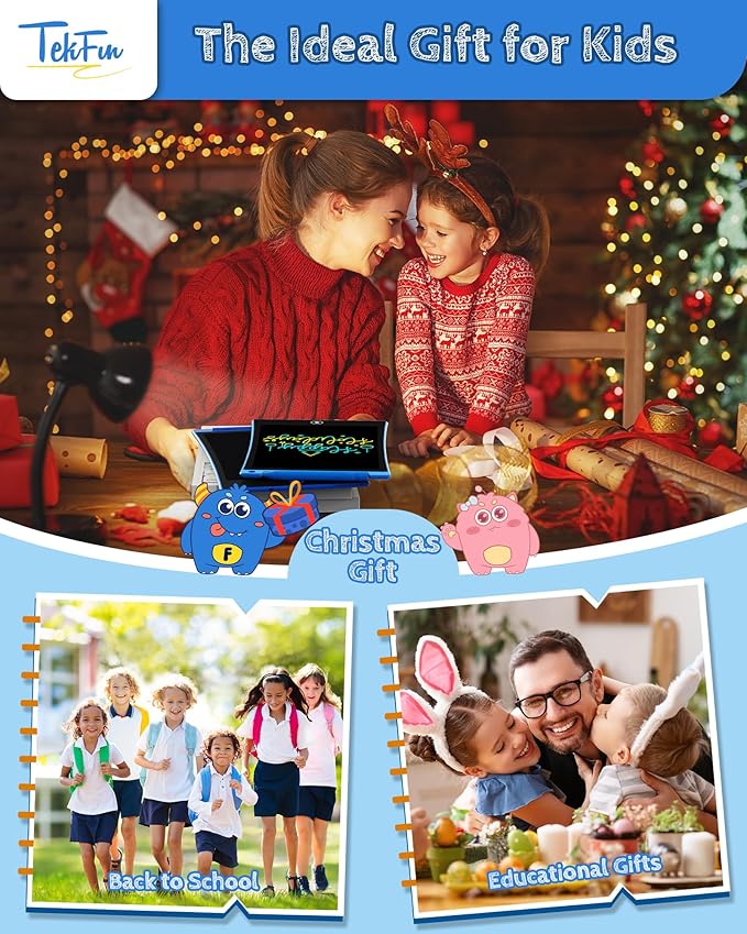 - Ideal Kids Gift Choice: With the elegant package, TEKFUN LCD drawing board would be a perfect gift for kids on any occasion, definitely bringing them boundless excitement. No matter for birthdays, Christmas, Easter, Valentine's Day, back-to-school supplies, etc. A suitable gift toy for 3 4 5 6 7-year-old boys and girls. Multi-use for all age groups, even toddlers, children, teens, or adults.
