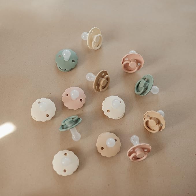 The FRIGG line of daisy silicone pacifiers with improved SilkySoft nipple and an innovative Click-lock System has been thoughtfully designed for your baby's comfort. The outward curve keeps the pacifier off their delicate skin, while features like air holes and a security handle ensure your baby stays safe. Available in a range of soft colors, FRIGG pacifiers make a beautiful addition to your collection of baby essentials.