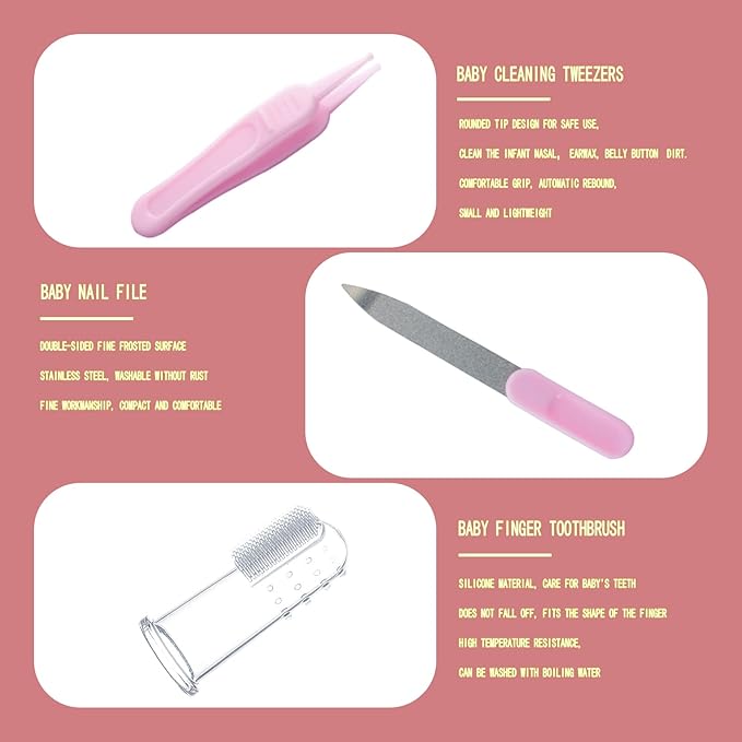 Baby Grooming Kit, Baby Essentials for Newborns, Portable Baby Care Kit, Contains Baby Nail Clippers, Baby Comb, Baby Brush, Baby Ear Wax Removal Tool and More (10 in 1) (Pink)