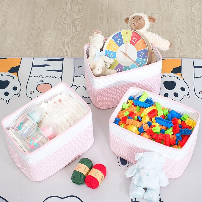 MINTWOOD Design 3-Pack Storage Baskets for Shelves, Decorative Baskets for Organizing, Woven Baskets for Storage, Book Basket, Cube Organizer, Cube Storage Bin Box, Closet Organizers, Light Pink