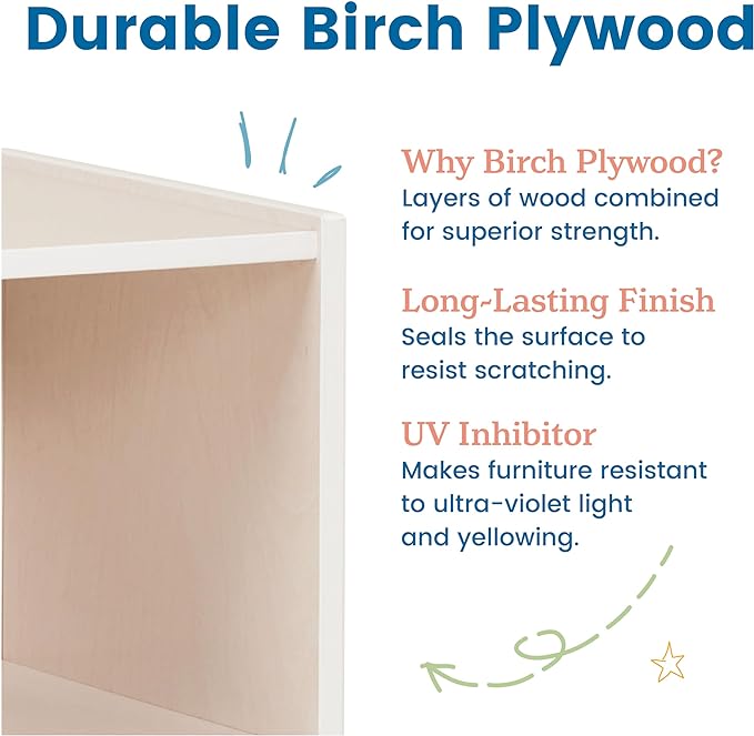 - Certified Safe: Kids book shelf is GREENGUARD [GOLD] Certified for low VOCs, TSCA, and CPSIA compliant; features rounded edges and smooth surfaces for safety