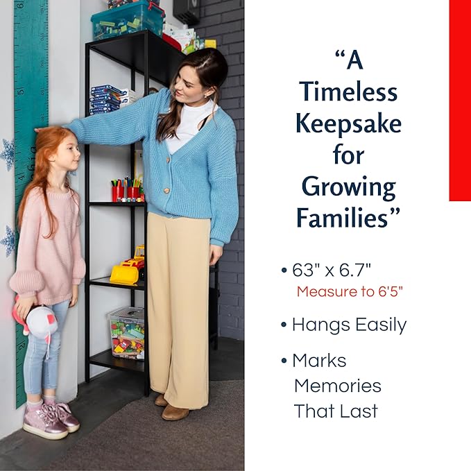 Measures from 15" to 6'6" (two piece foldable chart is 63" long x 6.7" wide). Each chart comes in your choice of four wood finishes—Natural, White Washed, Grey, or Teal—to match any room style from modern to rustic.
