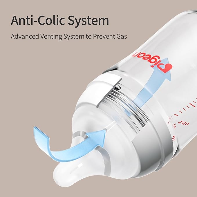 Pigeon Glass Nursing Bottle Wide Neck, Anti-Colic, Streamlined Body, Natural Feel, Easy to Clean, Heat-Resistant, 8.1 Oz(Pack of 2), Includes 2pcs M Nipples (3m+)