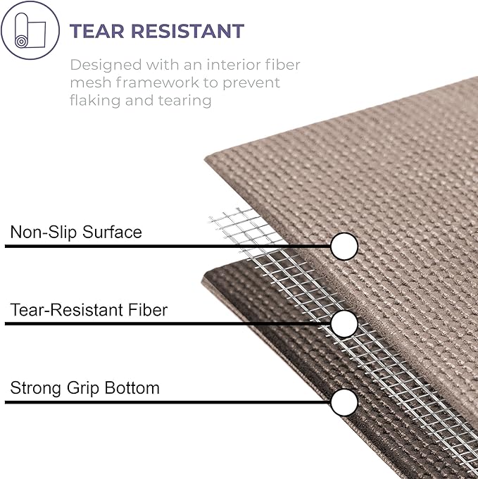 - Non-Slip: The fitness mat features a textured surface for stability and balance when changing or maintaining poses; created with an interior fiber mesh layer to reduce mat stretch and resist tears for longevity