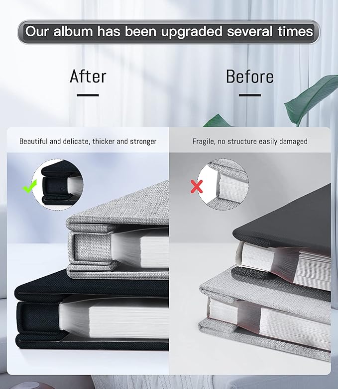 - 📐Album size: The external cover size is (L) 11.4 x (W) 10.5inches, internal self-adhesive page size is (L) 11 x (W) 8.8inches.The album contains 30 sheets/60 pages and can hold approximately 180 4" x 6" inch photos.Our albums have even greater capacity, you can choose one that best suits your needs