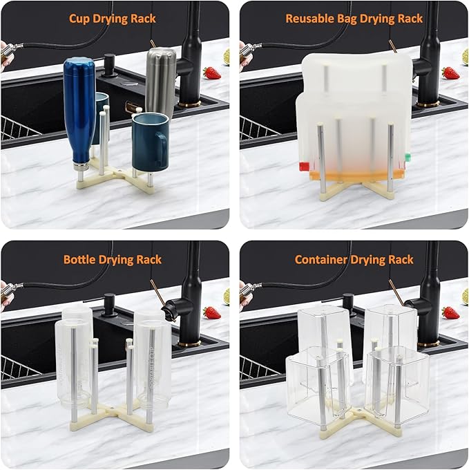 - 【Multi-Purpose Design】Aside from drying reusable food bags, you can also use it as a water bottle dryer rack, cup drying rack, and mason jars drying rack. just put them on the metal rod, drain the water as fast as possible.