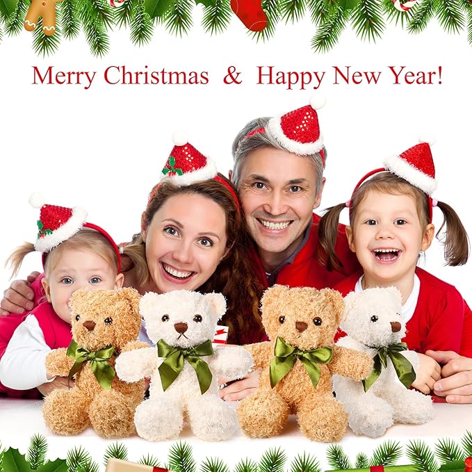 Cute Bear Set: bears stuffed animals have a plush look with a cute green ribbon around their necks, which look nice and feel comfortable; They sit up nicely and are great for decorating your room