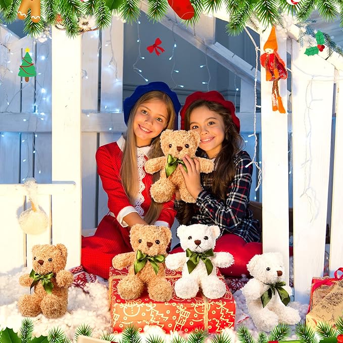 Bear Doll: the package has 12 pieces stuffed bears in 2 colors, including white, light brown, 6 pieces for each color; Sufficient quantity and various colors to meet daily use and decorations