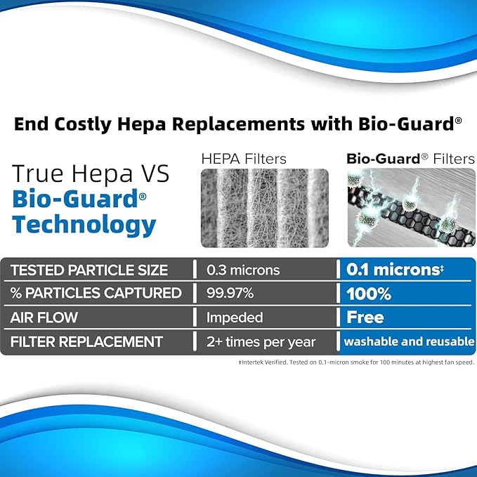 - DUAL 3-STAGE FILTERATION – 2 Stainless-steel prefilter captures large particles. 2 Hi-Tech Bio-Guard Filters & 1 Bio-Guard 360 Filter remove harmful airborne particle pollutants and odors.