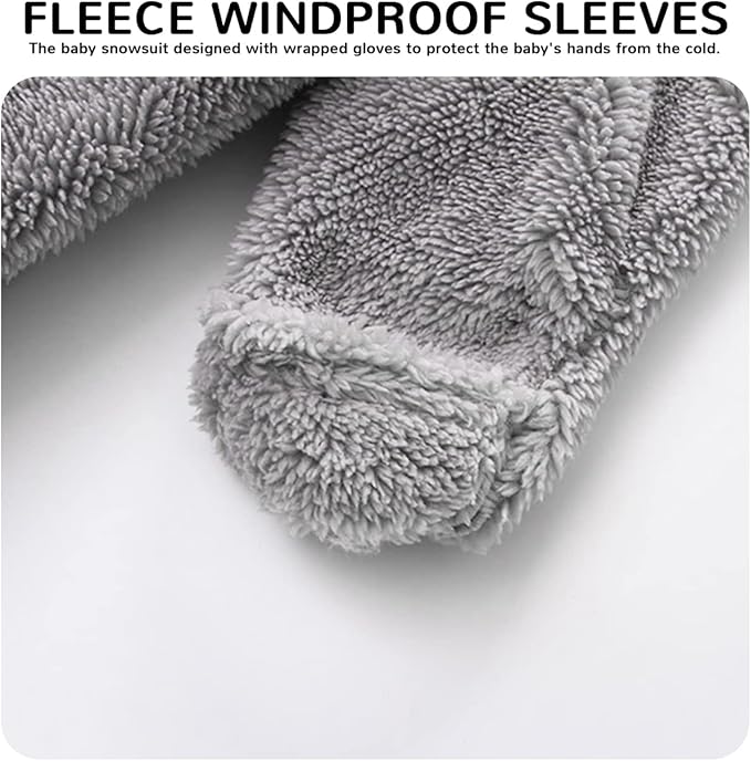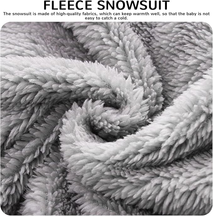 • ❤♥Material: This baby snow suit made of high quality polyester fiber, double lining, fine polyester fiber cares for baby's delicate skin. The newborn winter outfit hoodie whole body jumpsuit design, keeps the baby's head and ears inside and warm when outing. The toddler boys & girls snow suit accompanies the baby through the cold winter.