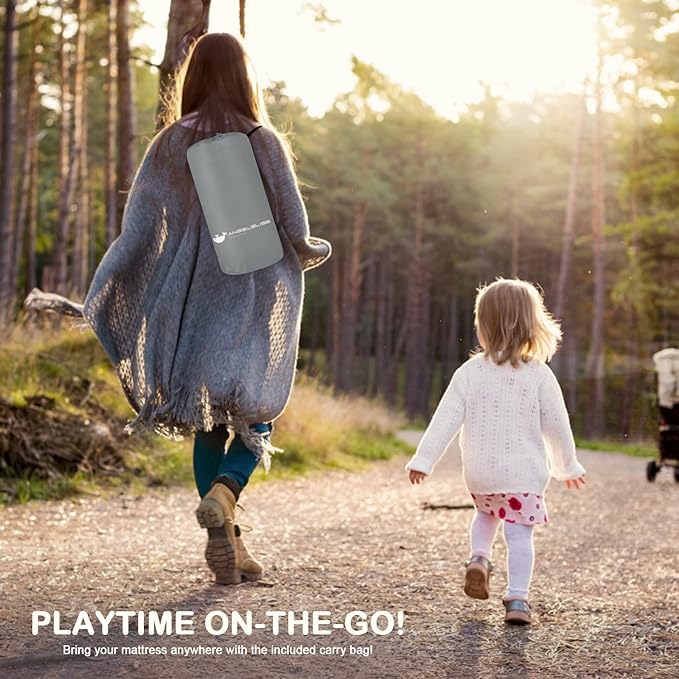 THICKER & SOFTER - The baby play mat can be up to 1.18 inches thick when fully inflated, high-resilience foam filling provides extra comfort for your baby's crawling, rolling, sitting up & first steps.