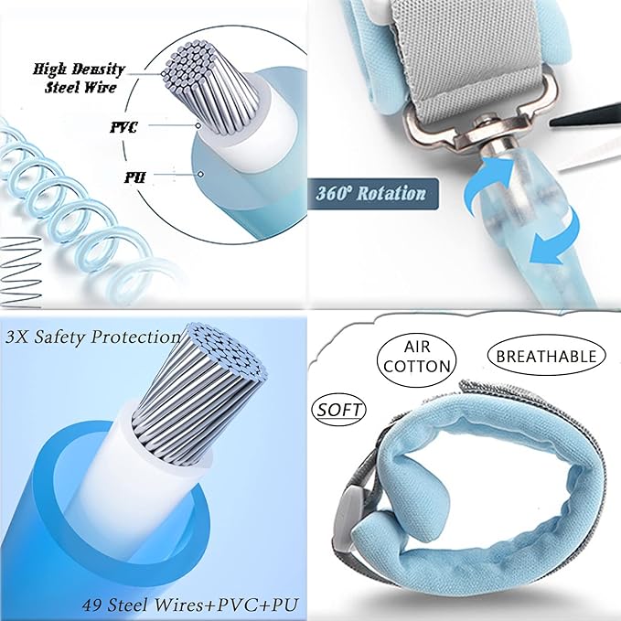 Toddlers Leash + Anti Lost Wrist Link Child Kids Safety Harness Kids Walking Wristband Assistant Strap Belt for Boys Pink Christmas Gift (Purplish Blue)