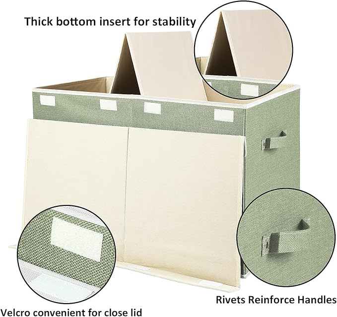 DURABLE & STURDY DESIGN - Kids toy storage organizer made from premium linen fabric and thickened cardboard, with rivets Reinforcement Handles you can easily carry the foldable toy box around your home