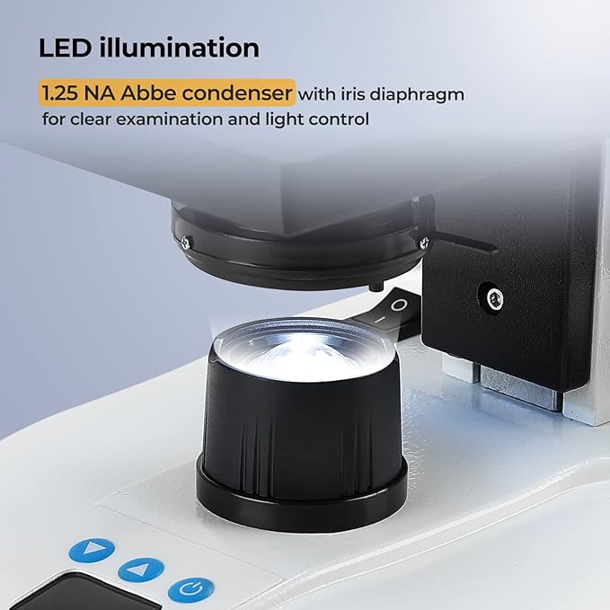 - [Constant Temperature Mechanical Stage]: New technology allows the stage to adjust the temperature from 0-50℃. It can keep the sample at the right temperature to maintain high vitality, perfect for researching artificial breeding artificial insemination. With 1.0mm stage divisions, locks slide into place and provides precise slide manipulation along the X- and Y-axis to allow coordinates to be recorded, enabling the viewer to return to a specific location on the slide.
