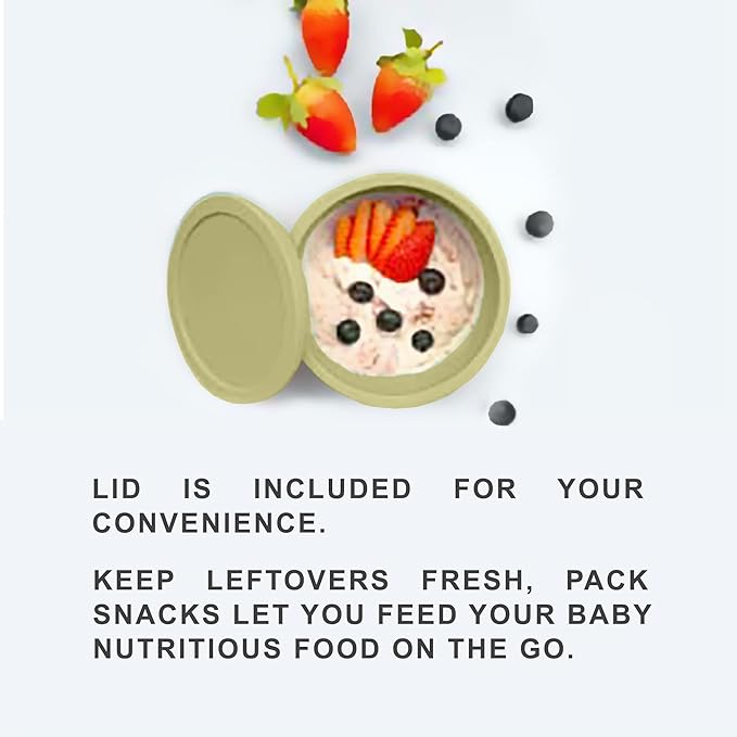 - DESIGNED FOR ERGONOMICS: Food and feeding time can be messy. Thanks to our ergonomically designed self-feeding bowl for babies, eating becomes easier and more fun for your babies. Don't stress about the mess! Our baby bowls with suction keep your baby's food from spilling. With its convenient size of 4.8" x 4.5" x 2.7", our baby bowl can easily fit any brand of highchair. Our microwave safe bowls with lids for toddlers are also temperature-resistant, so you can heat up your baby's food safely.