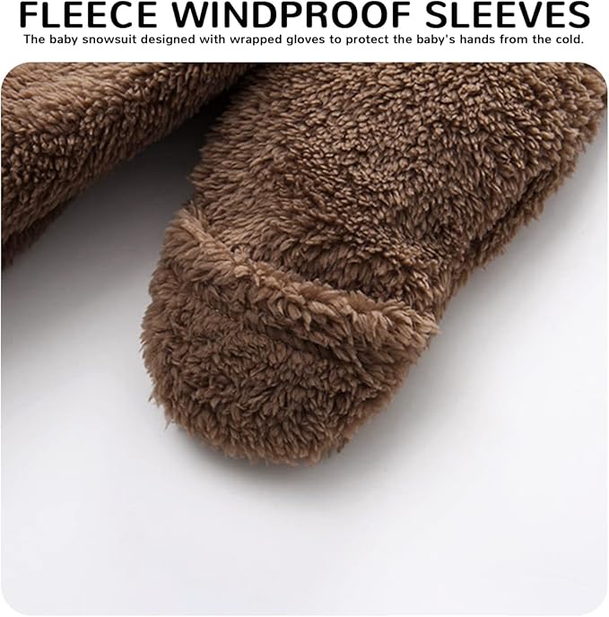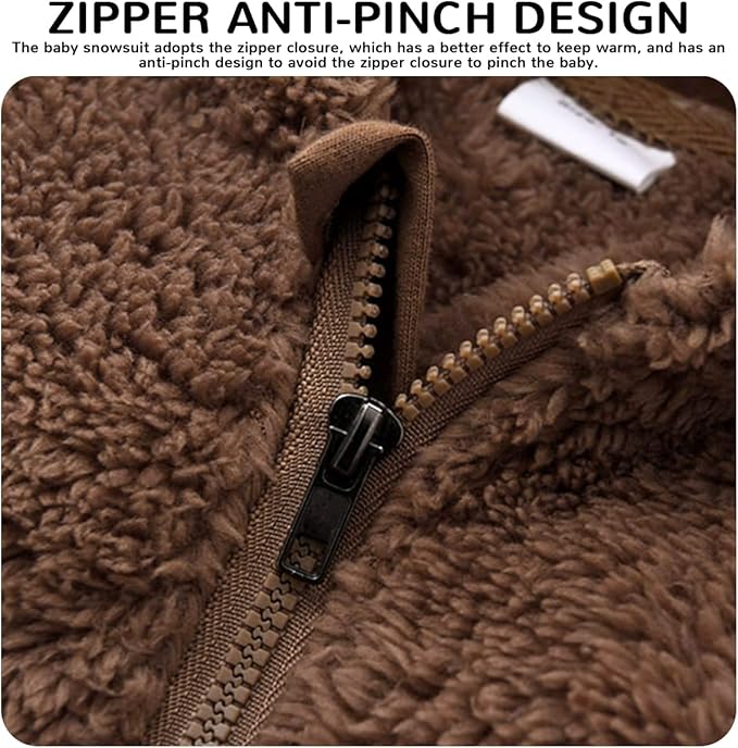 - ❤♥Design: Baby snow jacket warm one-piece jacket, full-cover zipper design to protect the baby from harm, one pull to the end, it is convenient for the baby to change diapers, the flip-up gloves can keep the baby warm and energetic at the same time, the bear ear one-piece cap makes the baby Avoid cold winds outdoors while increasing your baby's charm