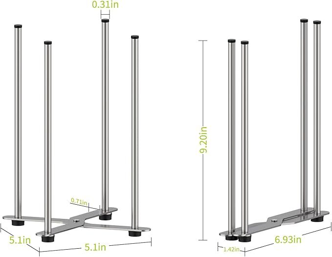 - 【Sturdy Structure】: made of 304 stainless steel, rust proof, the foldable base and four poles are thick and sturdy enough to hold wine decanters, there are also four plastic slip-proof bases on the bottom to prevent the bottle drying rack from slipping or flipping over.