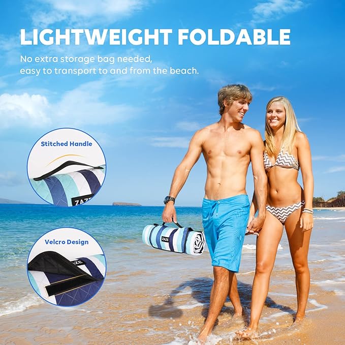 - Safe and Cozy with Padding 3-Layers: ZAZE picnic mat has thick and sturdy fabric on the top, soft cotton for middle, and durable fabric backing. The 3 layers of the ZAZE beach blanket provide extra cushioning and comfort for sitting or lying on the beach, insulation from the hot sand during summer to protect your skin, and a barrier between you and rough or uneven terrain
