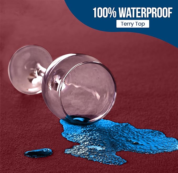 • Waterproof Terry Top - The mattress protector protects your mattress from unwelcome spills and keeps your mattress clean and safe. High-quality TPU backing secures your mattress from the top and resists any leakage into the mattress.