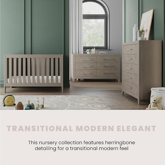 Modern Transitional Euro Crib: The gentle herringbone design on the sideboards of the Kieran 3-in-1 Convertible Crib adds a modern sophisticated look to your baby’s nursery