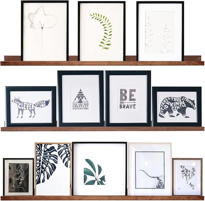- Well Designed Floating Shelf: The size of photo ledges is 48 in x 3.7 in x 1.6 in.Made of solid wood with a smooth, water-resistant surface. However, the color of the wood may vary slightly due to different wood grains.
