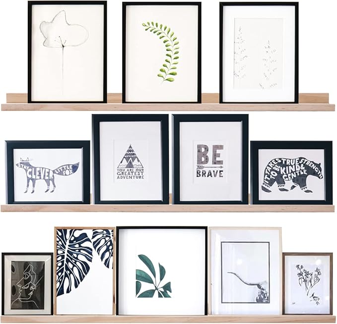 - Premium Floating Wall Shelf:Picture ledge wall shelf is made of 100% high quality solid wood, strong and durable with a natural touch, which can be well compatible with your home decor style.