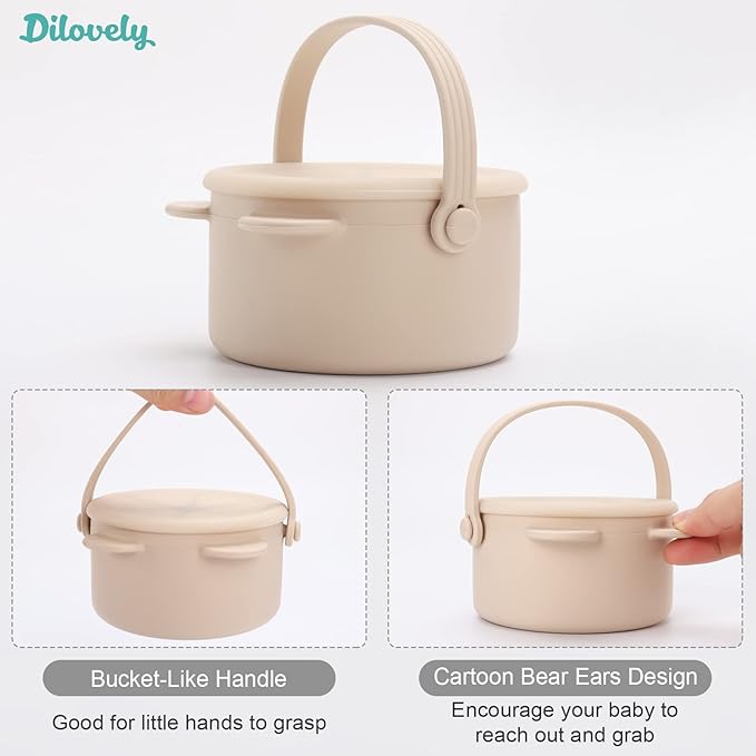 - SAFE FOR BABY: The Dilovely snack cups for baby is made out of food grade silicone, free from BPA, BPS, PVC, lead & phthalates. This kids snack container thoroughly tested by a third-party lab. Safe baby essential for self-feeding.