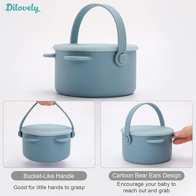 - SAFE FOR BABY: The Dilovely snack cups for baby is made out of food grade silicone, free from BPA, BPS, PVC, lead & phthalates. This kids snack container thoroughly tested by a third-party lab. Safe baby essential for self-feeding.