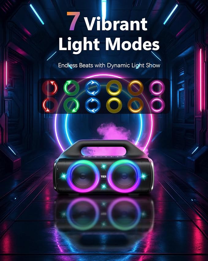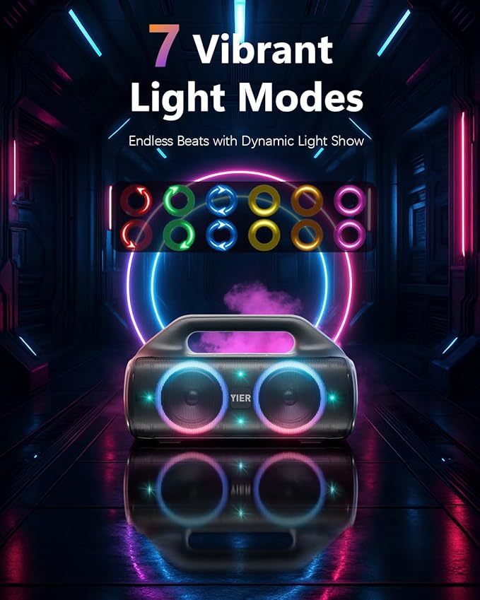 - 【TWS Stereo Surround and Light Show】Pair 2 of YIER Bluetooth speakers with lights to get the TWS function and a fully immersive and spatial audio experience. Also, the light show of speakers bluetooth wireless is crazy, it is a brand new beating mode, occupy your field of vision, light up the fiery party, and push the passion to a new level.