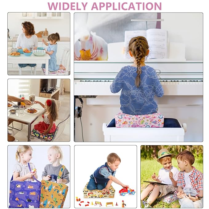 【Safety & Installation】-Two adjustable belts on the cushion suitable Heightening dining table seat of different sizes chair.The bottom of cushion has compact non-slip particles,There is no need to worry about sliding or slipping.