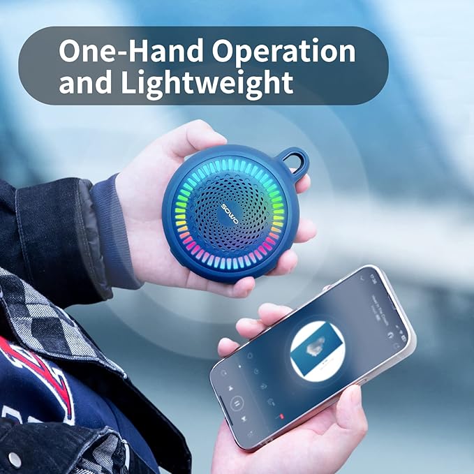 SOWO Shower Bluetooth Speaker Waterproof - Small Portable Wireless Clip Speaker with Louder Volume and Powerful Bass - Colorful Lights and 10H Playtime - Lightweight for Camping,Kayak,Boat - Blue