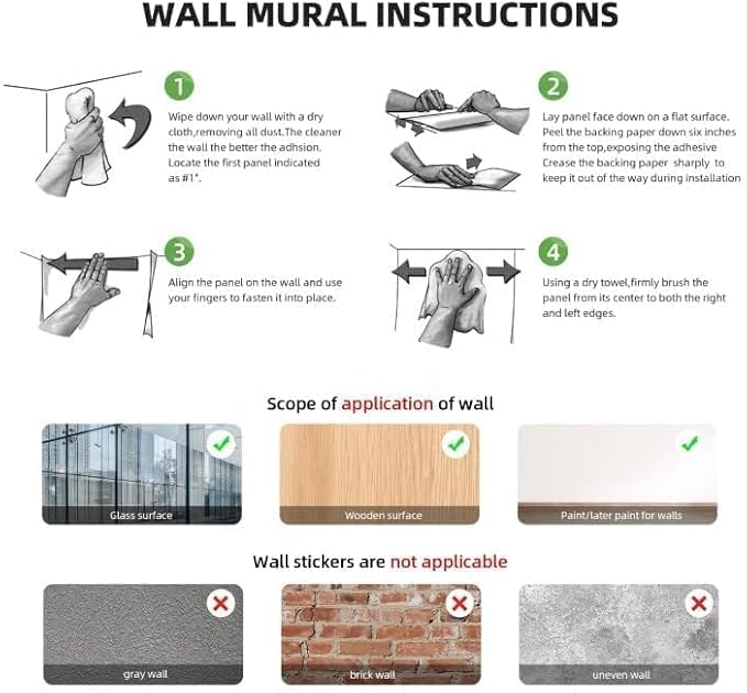 - Peel and Stick: You can use your imagination to create your own decorative style as all patterns can be freely arranged. Self-adhesive backsplash decals are easy to stick! Just peel and stick the decal on the wall, no transfer film, no cutting. Even children can do it independently! It is recommended that you plan where you want to paste so as not to repeat the paste and destroy the adhesion of the wall decal