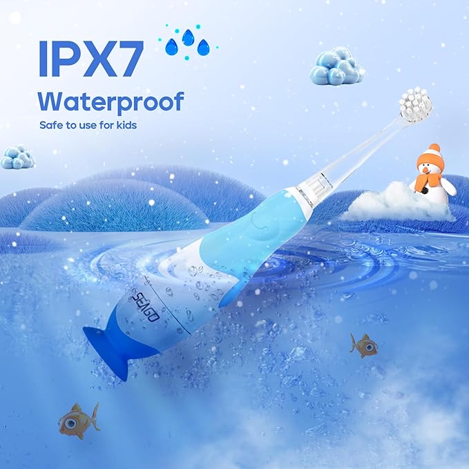 - IPX7 Waterproof Design: Seago children's power toothbrushes can be used in the shower. Long battery life supported by AAA battery,Batteries not included in the package,so you can safely use it in the bathing or showering