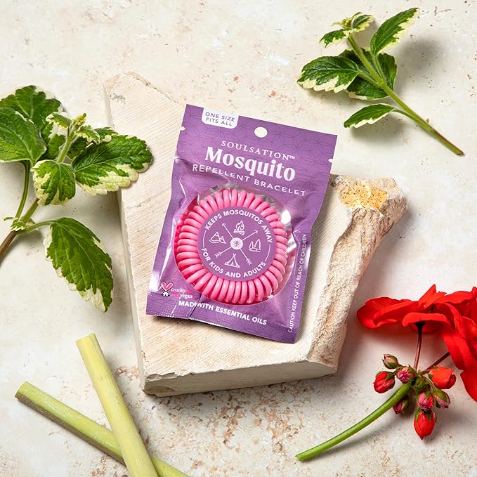 DEET Free, Made with Essential Oils – Our repellent bracelets are made with natural essential oils: Geranium, Lemongrass and Citronella. Essential oils have been found to repel mosquitoes.