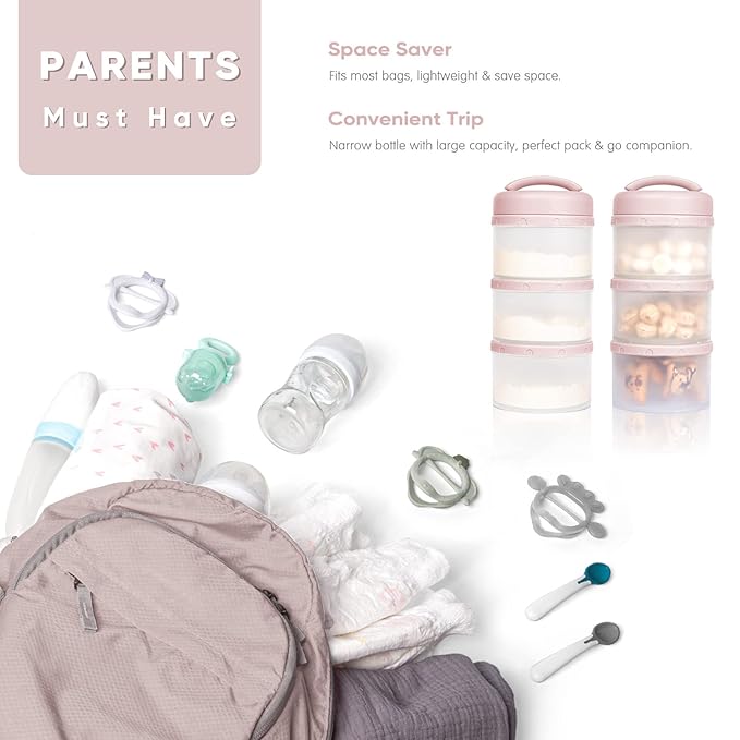 Termichy Stackable Formula Dispenser Portable Milk Powder Container, 2 Pack, Light Pink