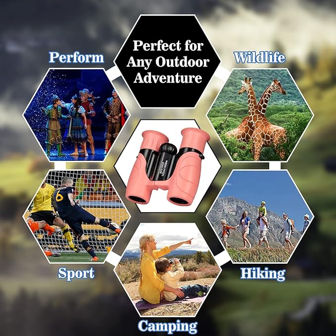 Pink Binoculars for Kids Ages 4-12, Durable & Lightweight Outdoor Telescope for Girls, Educational STEM Toy with Clear Vision, Adjustable Focus, Carry Bag (Perfect for Bird Watching, Camping, Travel)