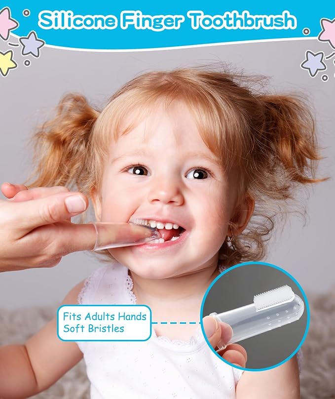 - SPECIALLY DESIGNED FOR BABY: 1. Grooming set: scissors with round blades, round teeth, gentle and non-irritating, suitable for baby's hair combing use; 2. Plastic tweezers, nasal aspirator and nail clippers with stopper to ensure baby's safety and comfort when using; 3. Dropper and measuring spoon with scale, convenient for you to accurately measure the amount, comfortable silicone finger toothbrushh and tongue cleaning stick, clean baby's teeth and tongue.