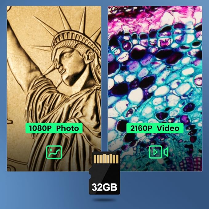 - 【Save Images and Videos with Included 32 GB Card】Support capture and video recording. You can take pictures and record videos during the observation process in real-time (32 GB Card Included)