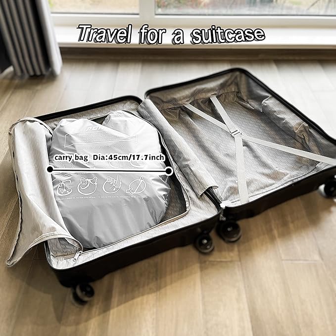 - Compact packaging-Weighting in at just under 2 pounds and packing size within 45cm circle that can be put in a suitcase or travel bags, over the age of 7 can fold it very easy only take it 3 seconds very quick