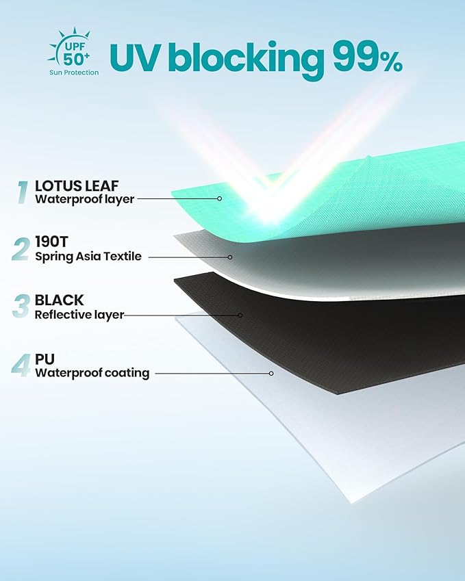 - Blackout Shelter Technology: Our Instant Shade Blackout Shelter is different from others on the market as it not only blocking 99.95% of UVA and UVB rays (UPF 50+), also eliminates 95% sunlight to protect your skin and objects for a more comfortable rest anytime of day