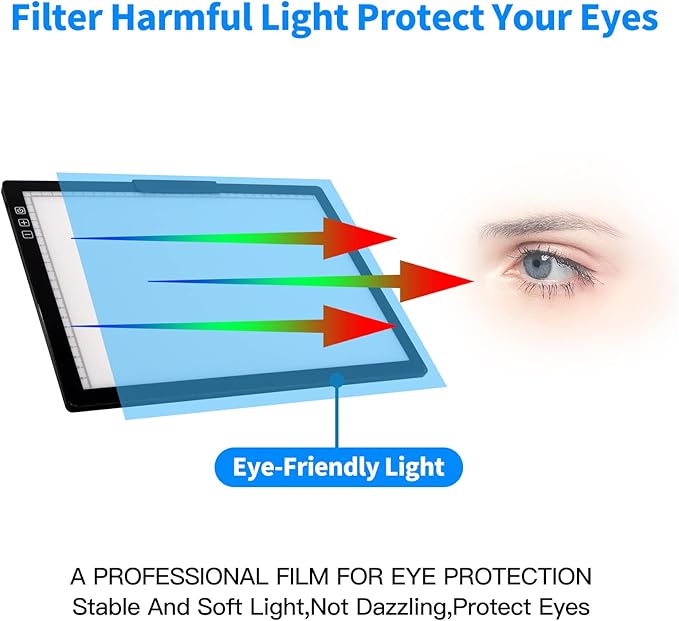 - 【 Wide Application 】 This A4 tracing drawing pad has a working area 31.1 * 21.8 cm, overall dimension including black frame is 34.2 * 25cm. Ideal for diamond painting, weeding vinyl, stencilling, 2D Animation, calligraphy, embrossing, scrapbooking, tattoo transferring, sketching, sewing projects, stainde glass, quilting and so on, suitable to be a gift for Kids on Christmas, Birthdays or any other holidays.