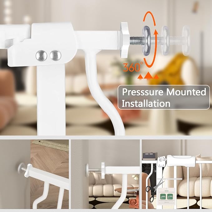 Baby Gate for Doorways Stairs Hallway 81.1-85.8 Inch Wide, Walk Through Child Gates with Pressure Mounted Extention Kit, Indoor Safety Child Gates for Kids or Pets