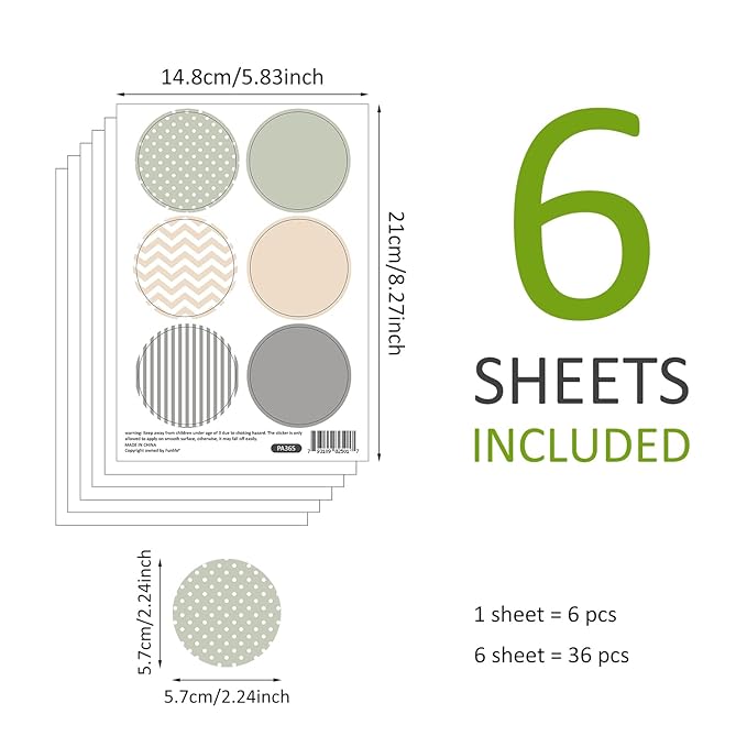 Boho Polka Dot Wall Decals 36 PCS, Boho Wall Decal Wall Sticker for Girls Room Living Room Playroom Nursery, Removable Wall Decals Kids Room Decor Vinyl Murals DIY Cute Decorations (6 Sheets)